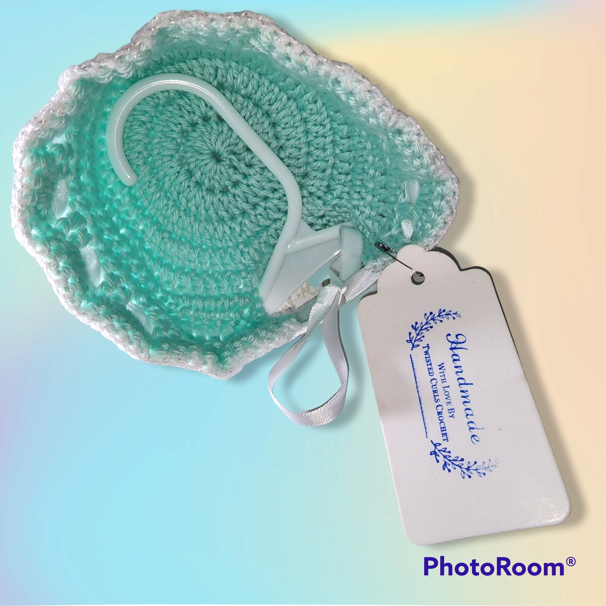 This is a handmade crocheted 0 to 3 months baby girl set, with dress, bonnet, diaper cover, booties. It is perfect to bring your little one home in. Dress has 16 in chest, 11 inch length. Diaper cover 14 inch waist. Booties measure 3 inches. Bonnet measures crown to front edge 5 inches. This set can be made to order in any color, just message me. Thanks Patricia, TwistedCurlsCrochet
